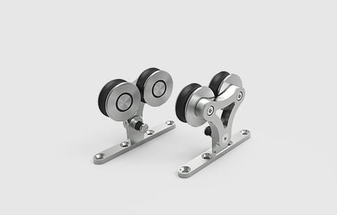 Roldana dupla de ø60 mm, para varão de ø25 mm, aplicada em portas de madeira com espessura de 30 a 60 mm.