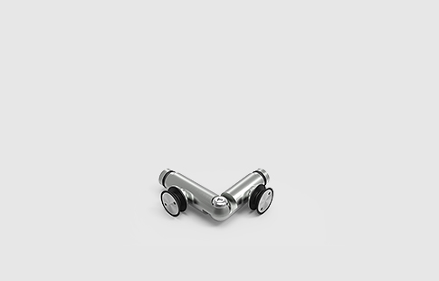 União tubular 90º com fixação dupla a vidros fixos, para tubo de ø20 mm.