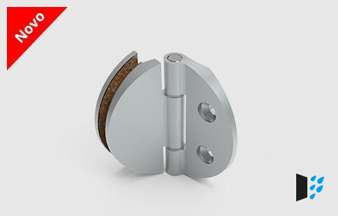 | Dobradiça vertical redonda de uma aba para parede. Aplicada em pára-duches, proporciona vedação a 100 %. | |