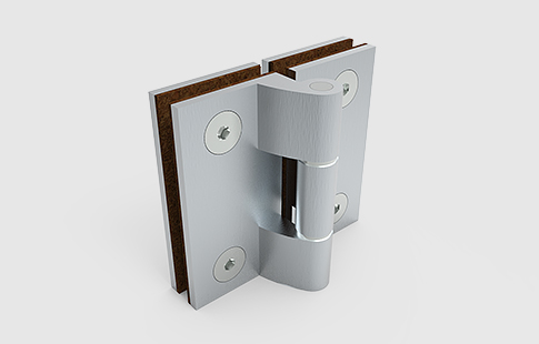 | Dobradiça vertical para vidro fixo, com abertura num só sentido a 180º. | |