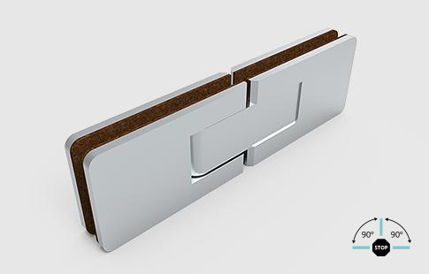 | Dobradiça horizontal para vidro fixo, com abertura nos dois sentidos e pontos de fixação a 90º. Usada em pára-duche e portas. | |