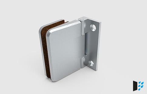 | Dobradiça vertical de uma aba para parede, com abertura num só sentido e ponto de fixação a 90º. Usada em pára-duche, proporciona vedação a 100 %. | |