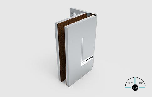 | Dobradiça vertical de uma aba para parede, com abertura nos dois sentidos e pontos de fixação a 90º. | |