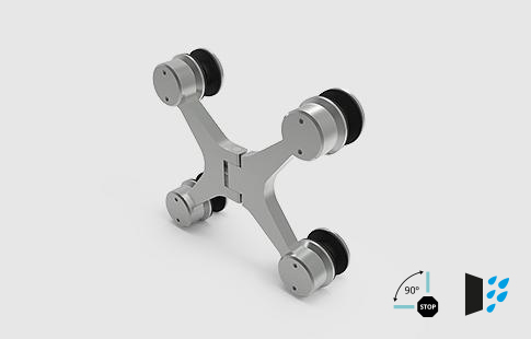 Dobradiça vertical em aço inox para vidro fixo, com abertura num só sentido e ponto de fixação a 90º. Usada em pára-duches e fixações diversas, proporcionando 100 % de estanquicidade.