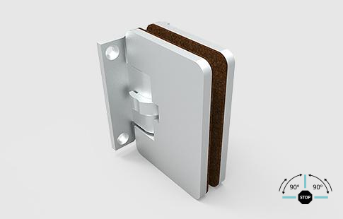 | Dobradiça vertical em alumínio para parede, com abertura nos dois sentidos e pontos de fixação a 90º, com recuperação ao ponto zero. Suporta até 30 Kg, para portas com peso até 60 Kg. | |