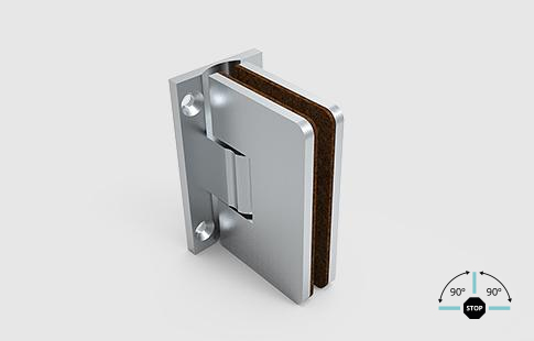 | Dobradiça vertical para parede, com abertura nos dois sentidos e pontos de fixação a 90º. | |