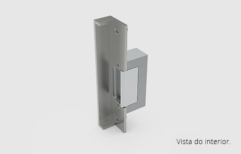 Testa com batente e trinco eléctrico 12/24V AC/DC (Fail Secure) para fixação à parede, utilizada com a fechadura referência FEC-625.