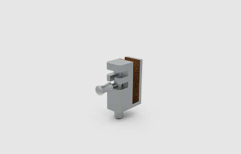 | Trinco pequeno igual ao FEC-678 mas para vidro sem entalhe. Usado com a testa sem entalhe FEC-4678. Indicar espessura de vidro no pedido. |