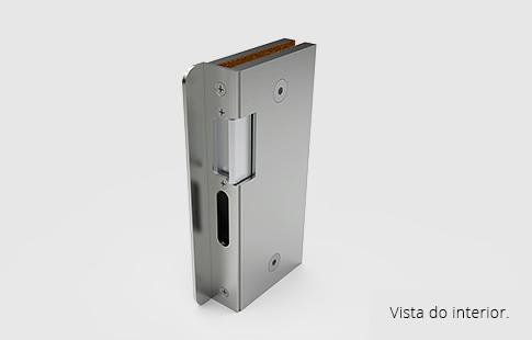 Testa com batente e trinco eléctrico 12/24V AC/DC (Fail Secure) para vidro fixo, utilizada com as referências FEC-724 e FEC-725.