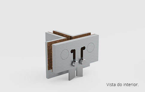 | União de fixação com batente e fechos, com contraventamento a 90º para o exterior. | |