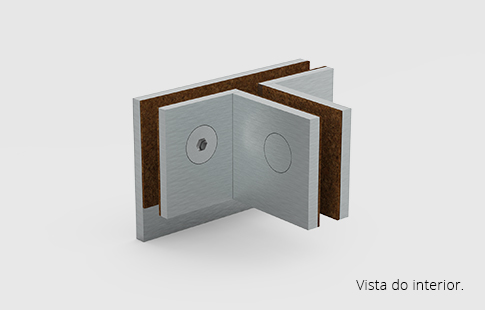 | União de ligação para dois vidros com batente, para duas portas e contraventamento interior a 90º. | |