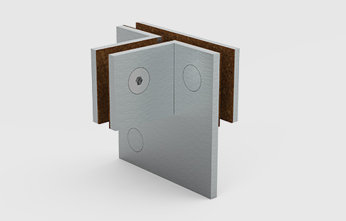 | União de ligação para dois ou três vidros, com batente para porta e contraventamento a 90º. Indicar no pedido Dir. / Esq. |