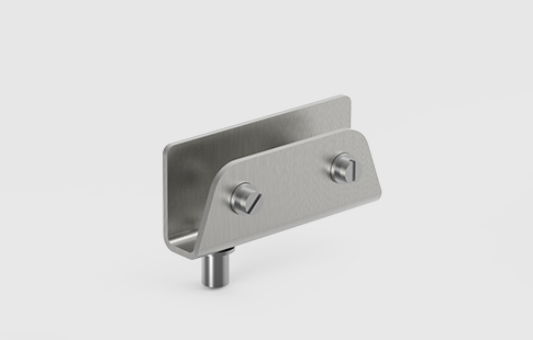| Peça pivotante em aço inox, para vitrine em vidro de 4 a 6 mm, com eixo e casquilho pivotante. Indicar no pedido Dir. / Esq. e espessura de vidro. |