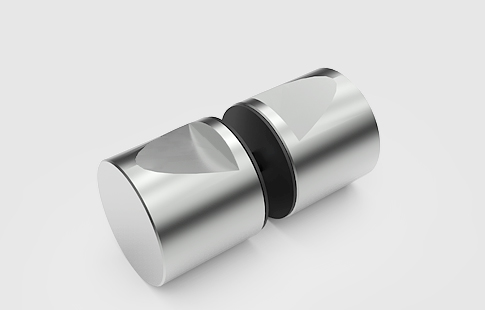 | Puxador cilíndrico duplo em aço inox. Indicar espessura do vidro no pedido. |