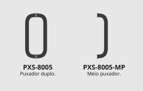 Opção de meio puxador disponível (PXS-8005-MP), neste caso os acessório de fixação são vendidos à parte, consultar separador dos Acessórios - ACS.