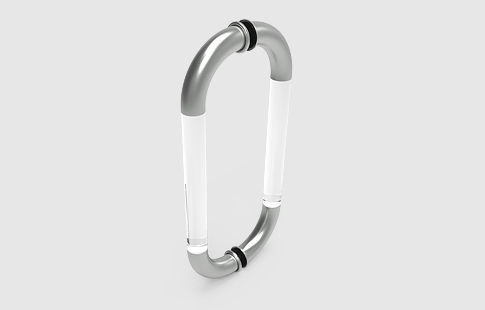 Puxador curvo duplo em aço inox e acrílico “tipo asa”.