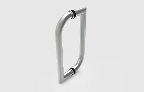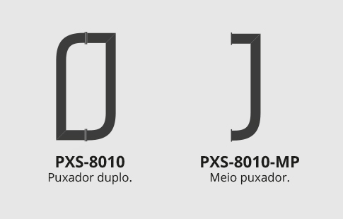 | Puxador curvo duplo em aço inox. Opção de meio puxador disponível (PXS-8010-MP), neste caso os acessórios de fixação são vendidos à parte, consultar separador dos Acessórios - ACS. Indicar medida A no pedido. |