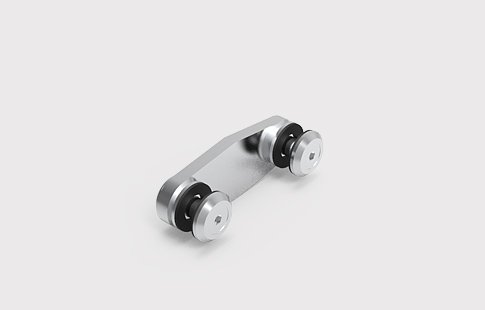 | União de fixação intermédia de dois vidros em aço inox, aplicada em pára-duches e fixações diversas. | |