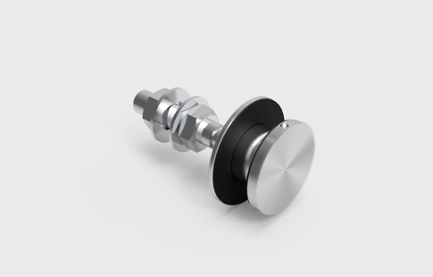 | Rótula para furo cilíndrico em aço inox AISI-316, para fachada agrafada em vidro temperado de 8 a 16 mm, aplicada em fachada de edifícios. | |