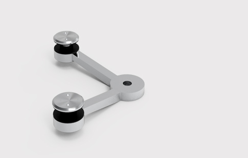 | Aranha em aço inox para fixação intermédia de dois vidros, aplicada em fachadas de edifícios. Opção em AISI-316 a indicar no pedido. |