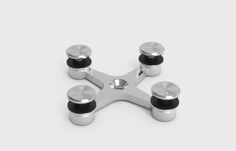 | Aranha em aço inox para fixação central de quatro vidros. Opção em AISI-316 a indicar no pedido. |
