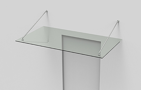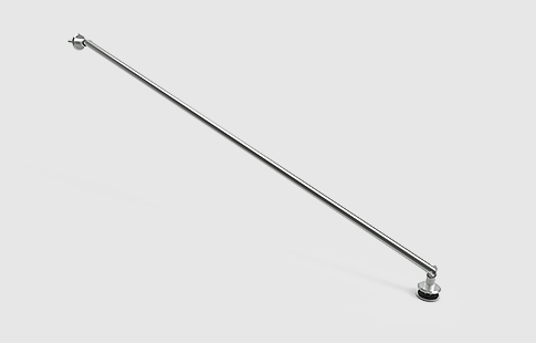 | Tirante em varão aço inox ø16mm articulado com ângulo standard de 20º ao vidro, para suporte de pala em vidro de 8 a 12 mm de espessura. Peso máximo por peça de 25 Kg. Indicar medida A no pedido. |