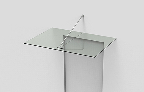| Tirante em varão aço inox ø16mm articulado com ângulo standard de 21º ao vidro, para suporte de união de pala em vidro de 8 a 12 mm de espessura. Peso máximo por peça de 25 Kg. Indicar medida A no pedido. |