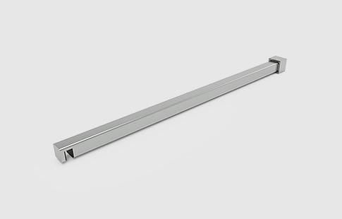 | Tirante em aço inox para fixação de vidro paralelo à parede, em tubo quadrado, utilizado em pára-duche. Indicar medida A e espessura do vidro no pedido. |