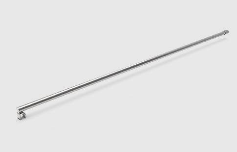 | Tirante em tubo de aço inox para fixação de vidro paralelo à parede, utilizado em pára-duche. Indicar medida A e espessura do vidro no pedido. Possibilidade de ajuste em obra. |