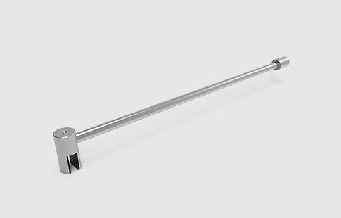 | Tirante em tubo de aço inox para fixação de vidro paralelo à parede, utilizado em pára-duche. Indicar medida A e espessura do vidro no pedido. |