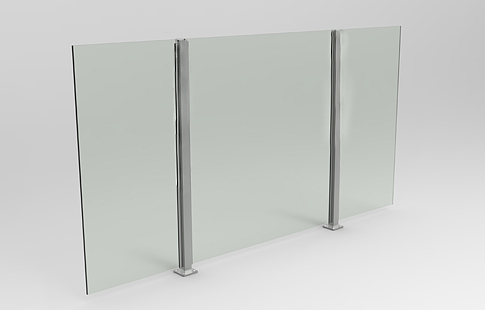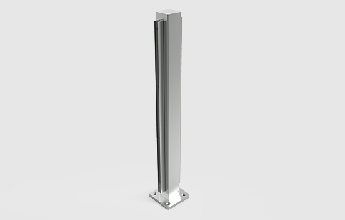 | Prumo em tubo quadrado de 40 mm e base quadrada de 80 mm em aço inox, para união de dois vidros laminados colineares. Utilizado em guardas de varandas. Indicar espessura de vidro no pedido. |
