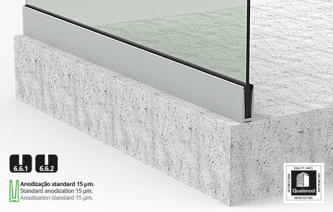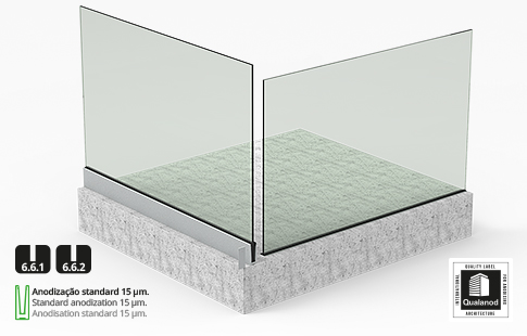 CLU-7011-15x15*x15 Calha U anodizada, usada como passa mão baixo, para vidro de 12 mm. Material Alumínio (Perfil 6500 mm). Lacagem opcional. *Medidda interior. |